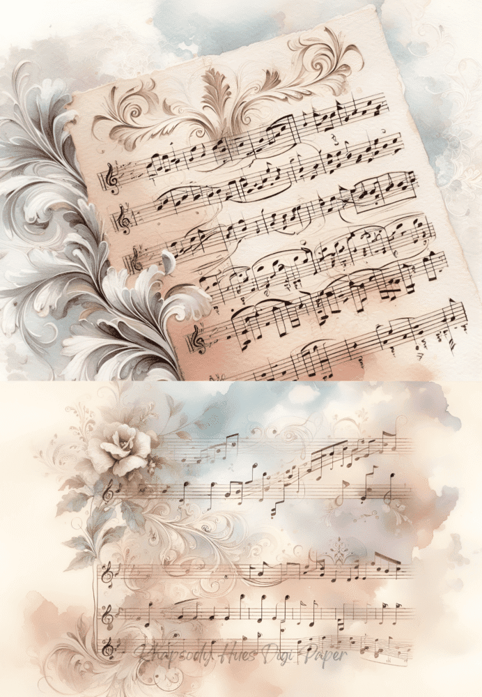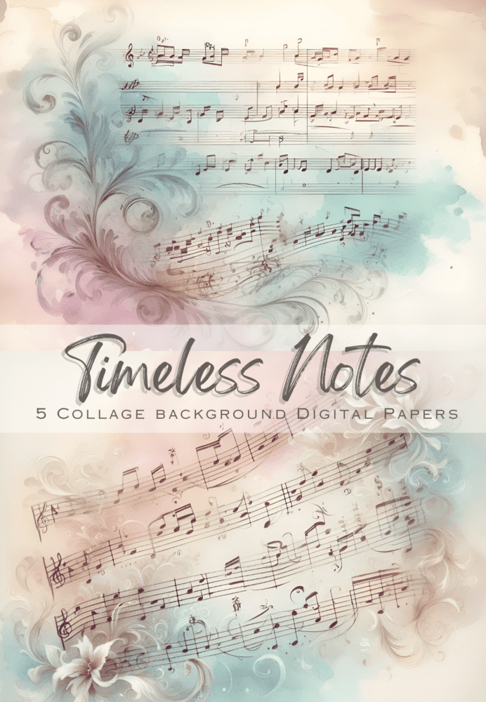 A refined set of Timeless Notes, 5 vintage music sheet digital papers, perfect for adding classic charm to paper crafts, junk journals, art journaling, decoupage, and collage projects. Designed for easy printing and endless reuse, these elegant music pages bring a nostalgic, timeworn beauty that layers effortlessly into any creative style.